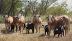 42. 11-Brahman cows 3 and 4 years old, selling bred heavy to Registered Horned Hereford bull. Three have 30-day old calves at side now! |